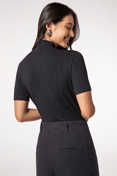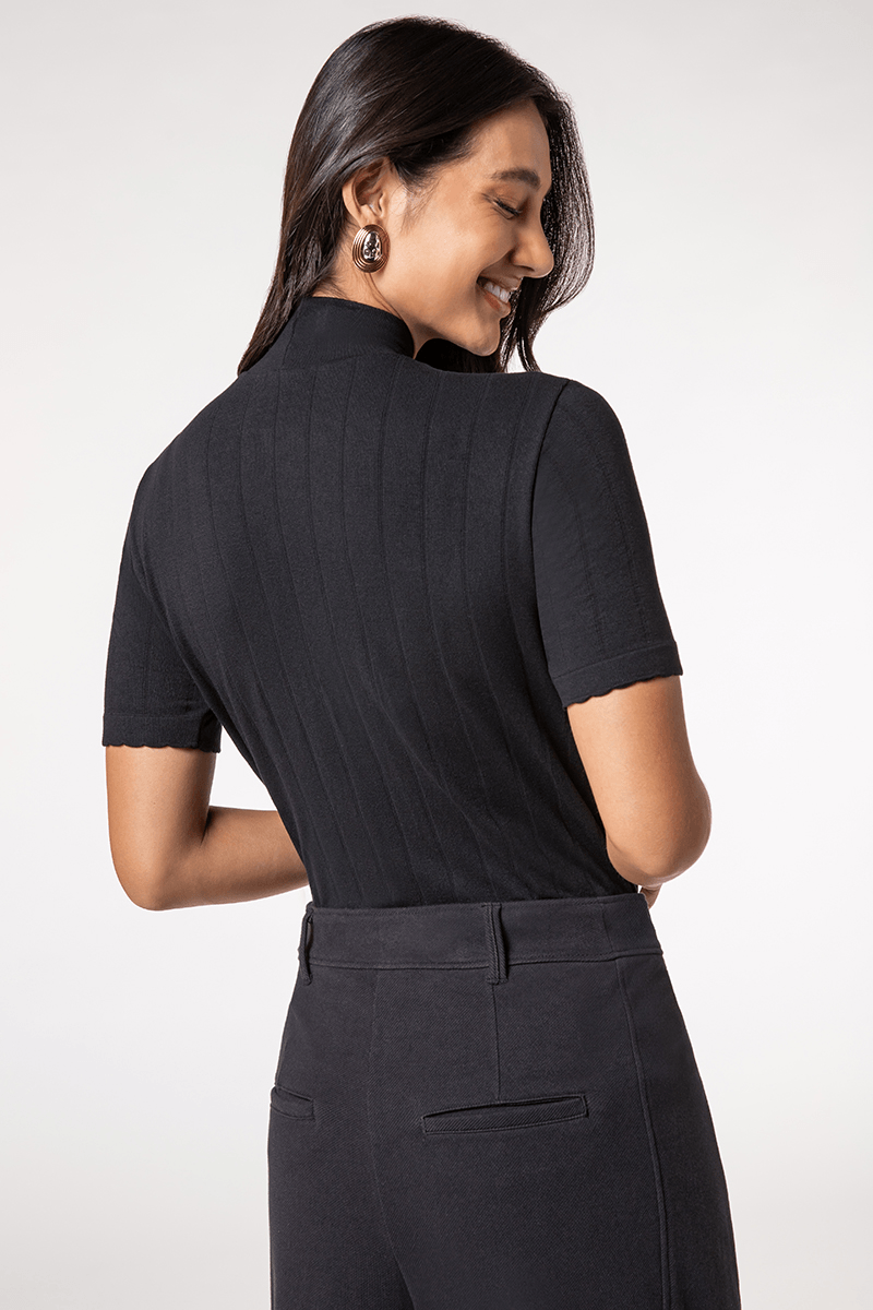 Blusa confeccionada com tecnologia Seamless, proporcionando um caimento perfeito e conforto excepcional. Feita em fio de bambu, a peça oferece suavidade e excelente respirabilidade, ideal para o dia a dia. Com gola alta e manga curta, a blusa une elegância e modernidade, sendo versátil para diversas ocasiões. O acabamento canelado acrescenta textura e sofisticação, destacando o estilo único da peça. Perfeita para quem busca aliar conforto e estilo em um só item.