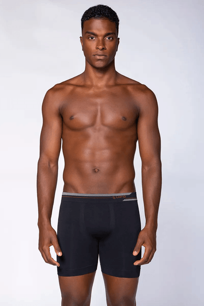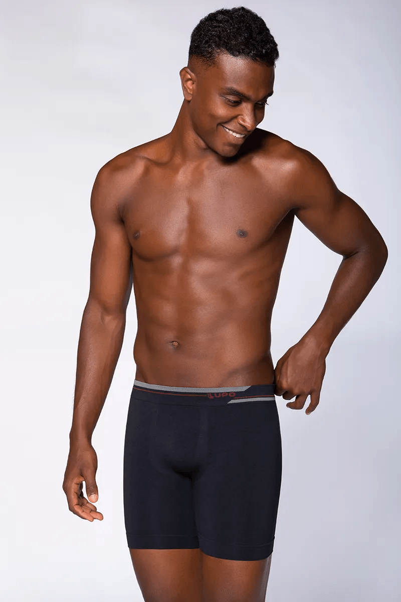 A Cueca Boxer Alongada Adulto Sem Costura possui fios sintéticos fabricados com filamentos individuais extremamente finos, que garantem uma peça de secagem rápida, macia e durável.