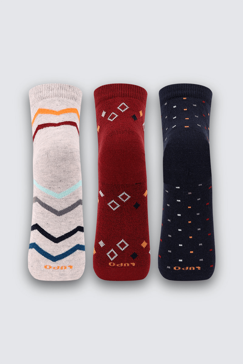 Kit com 3 pares de Meias confeccionadas em algodão livres de aditivos químicos e com elastano para maior ajuste e conforto, calcanhar verdadeiro. Cano de 9 cm aproximadamente.