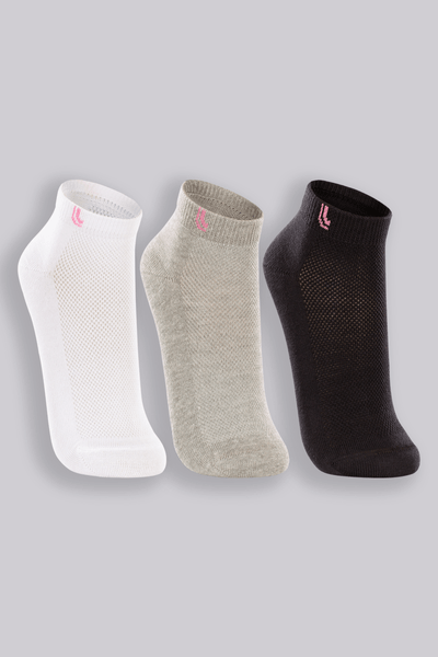 Cada meia do kit com três unidades é confeccionada com tecido de algodão, com pontos de ventilação assegura conforto térmico, por permitir rápida evaporação do suor e da umidade. Calcanhar verdadeiro e cano curto oferece ajuste perfeito nos pés e sensação de bem-estar ao vestir.