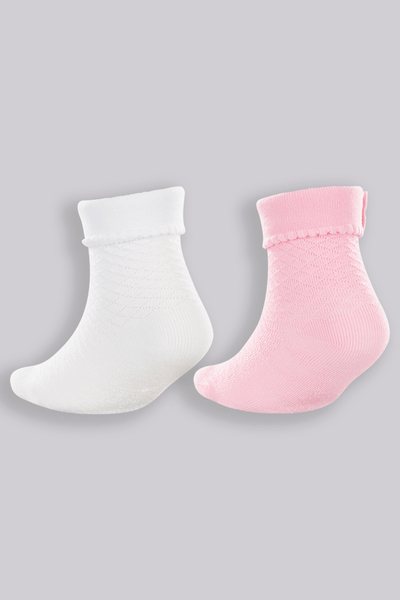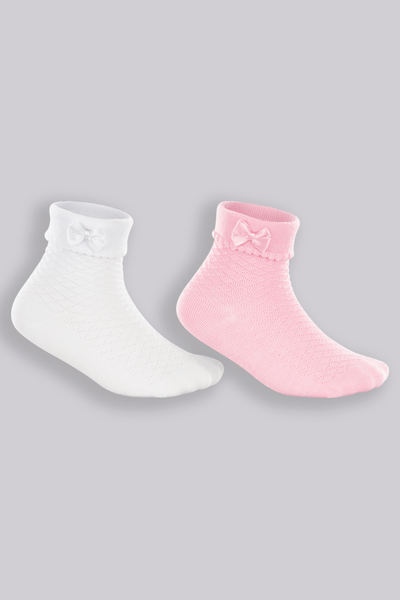 Kit com 2 pares de Meias de Bebê confeccionadas em algodão livre de aditivos químicos, com elastano para maior ajuste e conforto. Com aplique de laço.