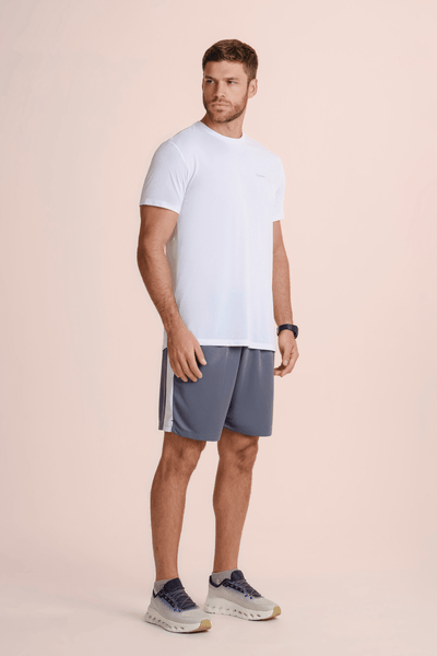 Shorts com modelagem ampla e leve para atividades físicas ou uso casual. Possui forro interno para proporcionar maior conforto, detalhe de faixa lateral em outra cor e detalhes refletivos.